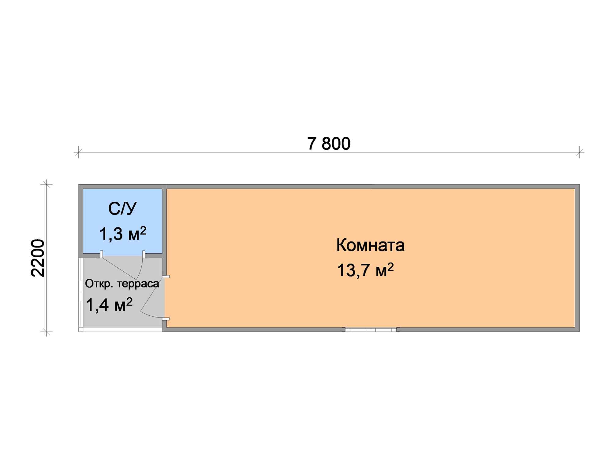 Дачная бытовка Лютик - 14x2.28.8ДВП-Оргалит: